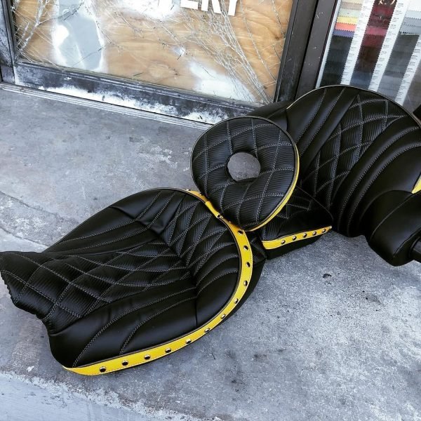 A2: This is a premium Corbin seat set that includes four components, offering both comfort and a striking yellow/black design for Harley Davidson bikes.